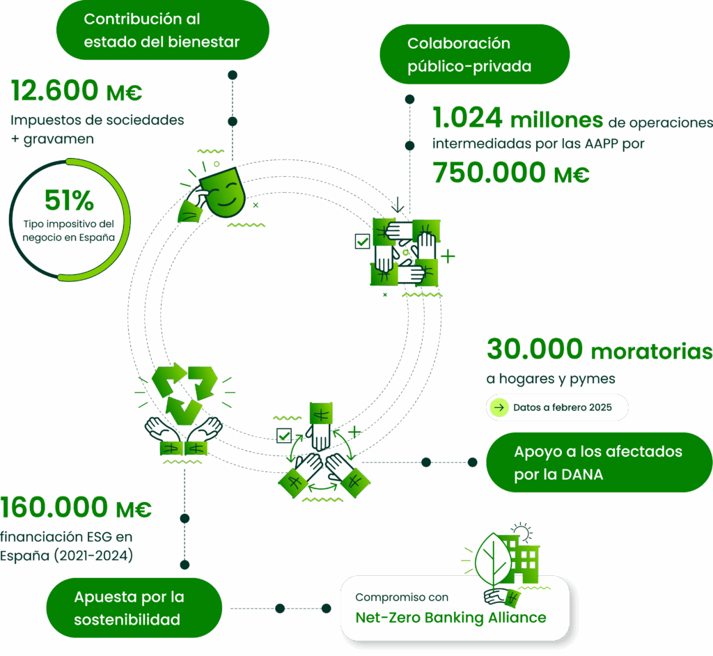 Puedes consultar aquí las cifras relevantes sobre los resultados y actividad de los bancos, así como la contribución al progreso económico y social de la banca a través del compromiso con el Estado de bienestar, la colaboración público-privada y la apuesta por la sostenibilidad y la innovación